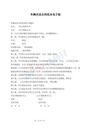 车辆买卖合同范本电子版