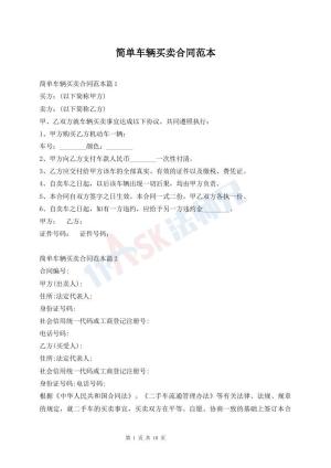 简单车辆买卖合同范本