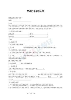 简单汽车买卖合同