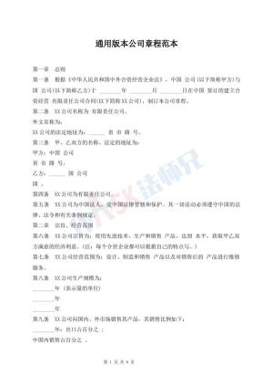通用版本公司章程范本