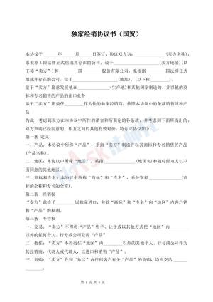 独家经销协议书(国贸)