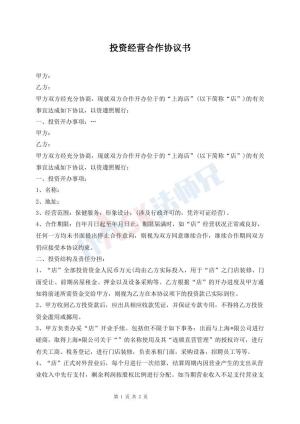 投资经营合作协议书