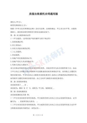 房屋出租委托合同通用版