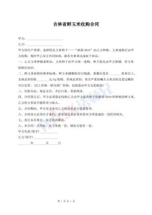 吉林省鲜玉米收购合同