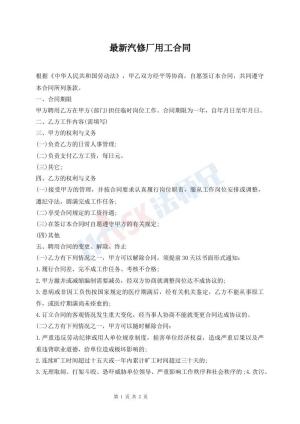 最新汽修厂用工合同