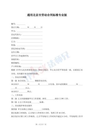 通用北京市劳动合同标准专业版