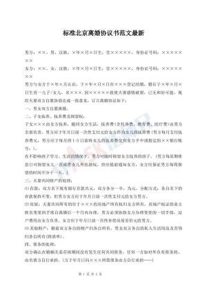 标准北京离婚协议书范文最新