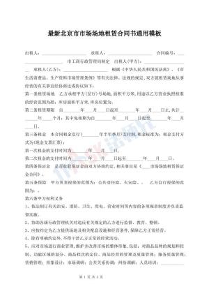 最新北京市市场场地租赁合同书通用模板