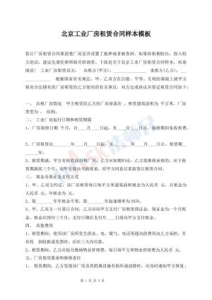 北京工业厂房租赁合同样本模板