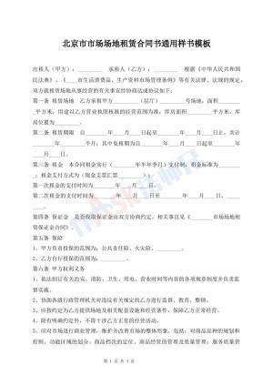 北京市市场场地租赁合同书通用样书模板