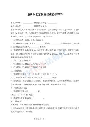 最新版北京房屋出租协议样书