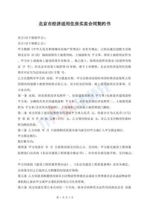 北京市经济适用住房买卖合同契约书