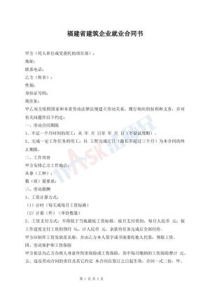 福建省建筑企业就业合同书
