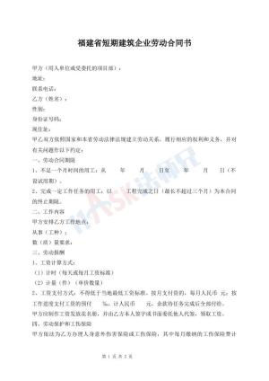 福建省短期建筑企业劳动合同书