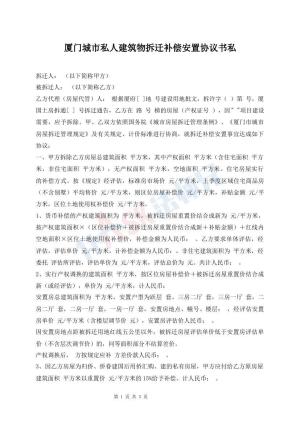 厦门城市私人建筑物拆迁补偿安置协议书私