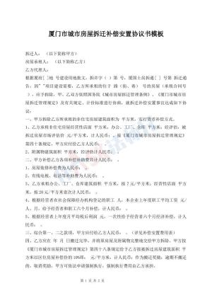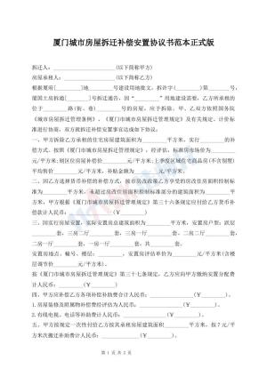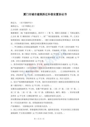 厦门市城市房屋拆迁补偿安置协议书模板
