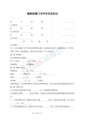 最新版厦门市汽车买卖协议