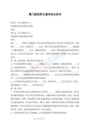 厦门股权转让通用协议范本