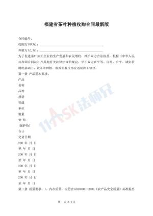 福建省茶叶种植收购合同最新版