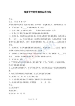 福建省早稻收购协议通用版