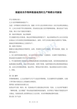 福建省农作物种植基地预约生产购销合同新版