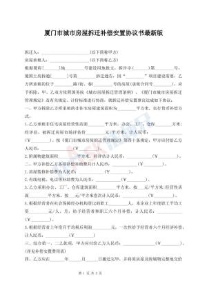 厦门市城市房屋拆迁补偿安置协议书最新版