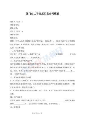 厦门市二手房屋买卖合同模板
