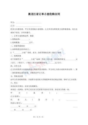 黑龙江省订单小麦收购合同