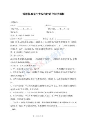 通用版黑龙江省股权转让合同书模板
