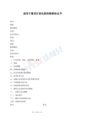 适用于黑龙江省化肥的购销协议书