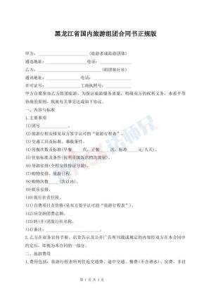 黑龙江省国内旅游组团合同书正规版