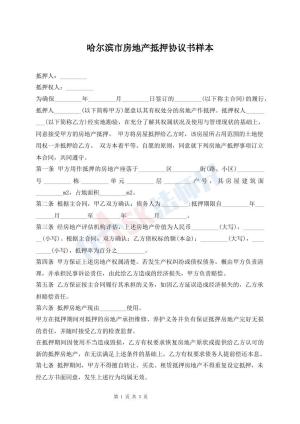 哈尔滨市房地产抵押协议书样本