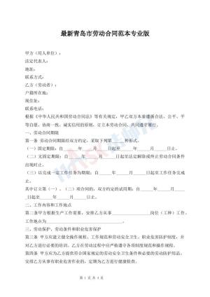 最新青岛市劳动合同范本专业版