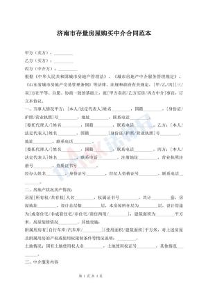 济南市存量房屋购买中介合同范本