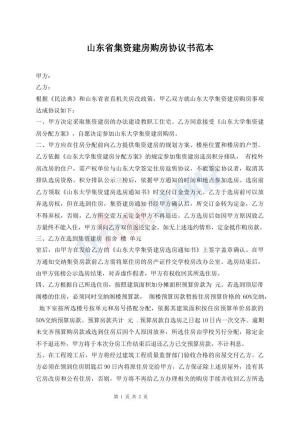 山东省集资建房购房协议书范本