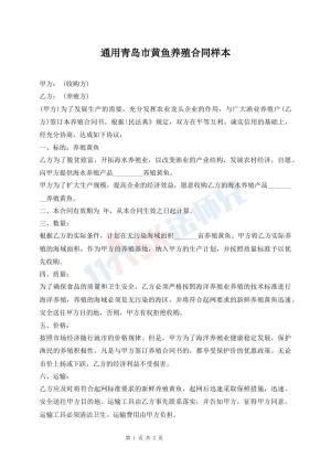 通用青岛市黄鱼养殖合同样本
