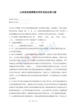山西省房屋销售合同补充协议热门版