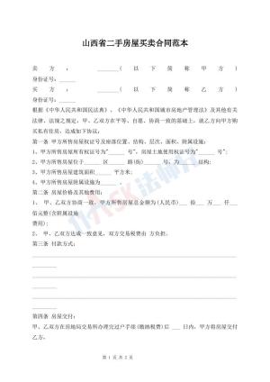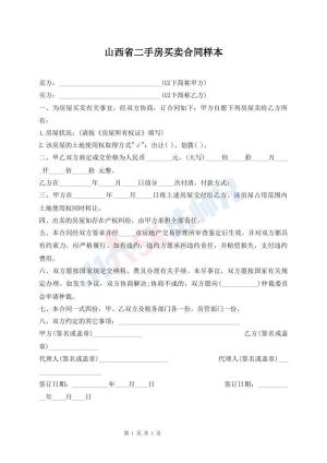 山西省二手房买卖合协议样书