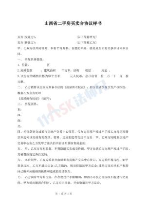山西省二手房买卖合同样本