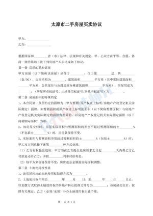 太原市二手房屋买卖协议
