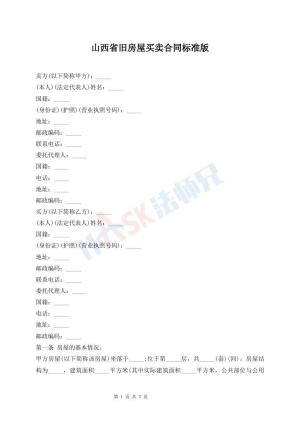 山西省旧房屋买卖合同标准版