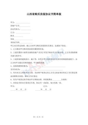 山西省购买房屋协议书简单版
