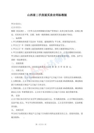 山西省二手房屋买卖合同标准版