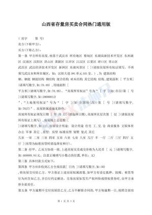 山西省存量房买卖合同热门通用版