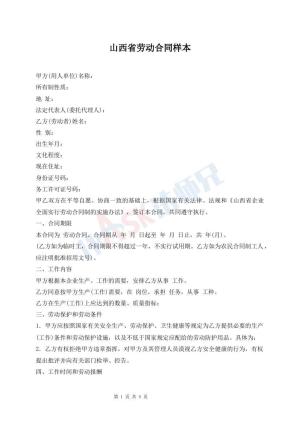 山西省劳动合同样本