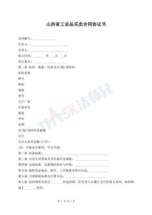 山西省工业品买卖合同协议书