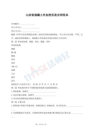 山西省混凝土外加剂买卖合同范本