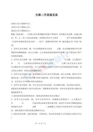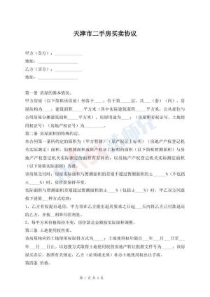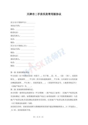 天津市二手房买卖常用版协议