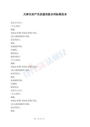 天津市房产买卖通用版合同标准范本