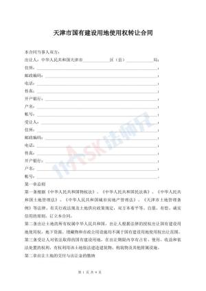 天津市国有建设用地使用权转让合同
